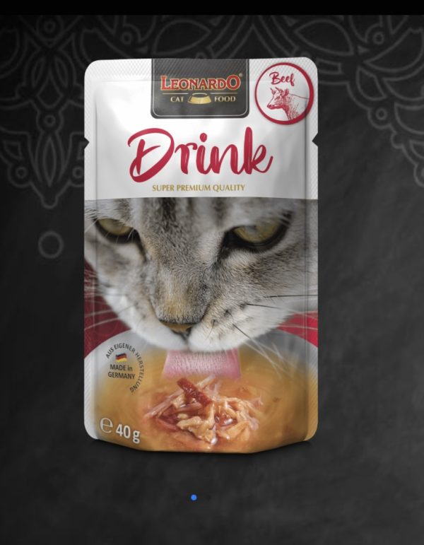 ¡Motiva incluso a los gatos más exigentes! Algunos gatos simplemente no sienten sed con frecuencia, pero el LEONARDO Drink Beef les hará cambiar de opinión rápidamente. Su delicioso sabor a carne es una tentación irresistible, fácil de digerir y que fomenta la hidratación, como una recompensa. Además, mejora su bienestar, ya que una hidratación adecuada apoya la salud del tracto urinario.