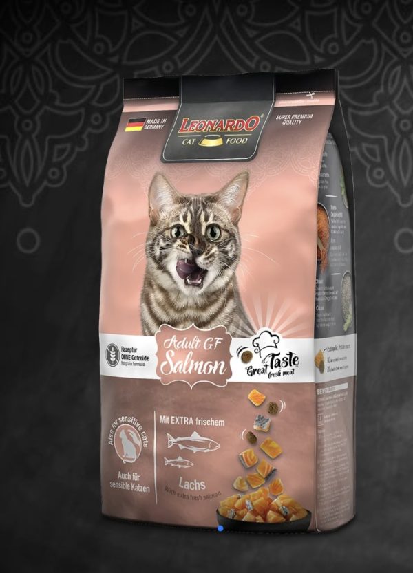 salmón fresco (30 %); harina de pescado de agua salada (20 %); amaranto (15 %); harina de guisantes; fécula de patata; grasa de ave; zooplancton marino molido (krill, 5 %); huevo secado (5 %); hígado de ave hidrolizada; levadura de cerveza secada (2,5 %); semilla de uva prensada por expulsor; semillas de chía (1,3 %); vainas de algarroba, secas; cloruro de potasio; inulina de achicoria
