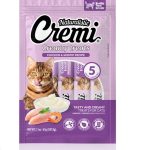 Snack cremoso para gatos de todas las edades. Elaborado con carne de pollo y camarón, y reforzado con taurina aminoácido esencial para los gatos. La fórmula además contiene extracto de té verde que tiene un alto poder antioxidante. El alto porcentaje de humedad promueve la hidratación junto con un aporte calórico controlado de sólo 6.9 kcal por tubo de Cremi. Excelente opción para utilizarlo con juguetes interactivos, congelarlo en épocas de calor o reducir el estrés al momento de dar un medicamento. Cremi es la mejor opción para fortalecer el vínculo con tu gato.