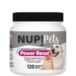 Power Renal, Suplemento Alimentario, 120 gr. Nup Pets. Formula especialmente creada para tratar o prevenir enfermedades renales y urinarias en perros y gatos. Retrasa progresión en la enfermedad renal, antiinflamatorio del tejido renal, reducción de cálculos, neutraliza radicales libres, favorece la producción de glóbulos rojos, ayuda a modular sistema inmune y digestivo, favorece regeneración de barrera intestinal y ayuda a reducir toxinas urémicas.